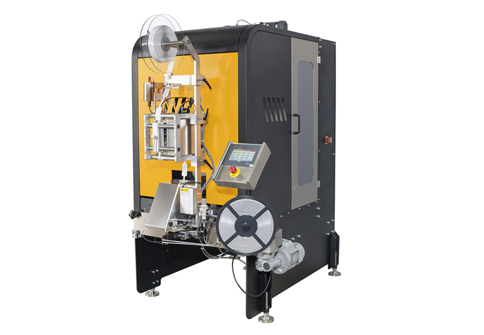 这款直立式网管的网袋包装机,配备了电机送网和收网功能, 特别适合重量轻,容易卡网的休闲食品和农产品的网袋包装,更是适合蒜头直条状包装.